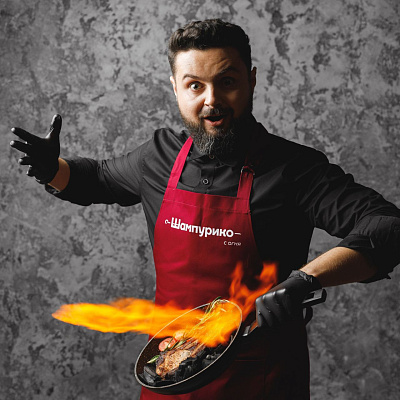 Курино-cвинoй фарш в золотистой корочке, обжаренный на открытом огне.