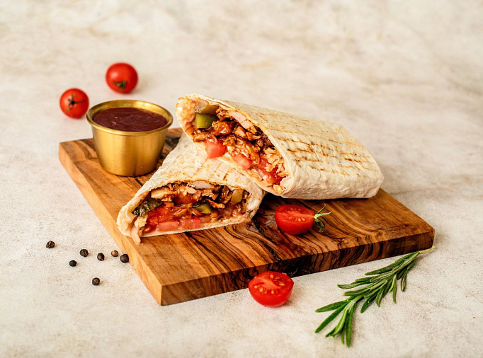 Нежное мясо, ароматные свежие помидоры, пекинская капуста и маринованные огурчики, приправленные пикантным соусом барбекю, и всё это завёрнуто в хрустящий армянский лаваш