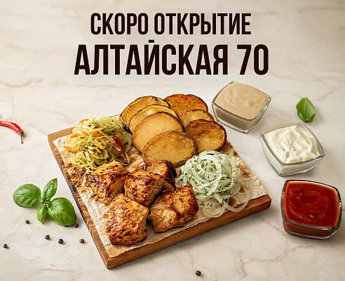 Нежный кебаб из курицы с гарниром и напитком на выбор